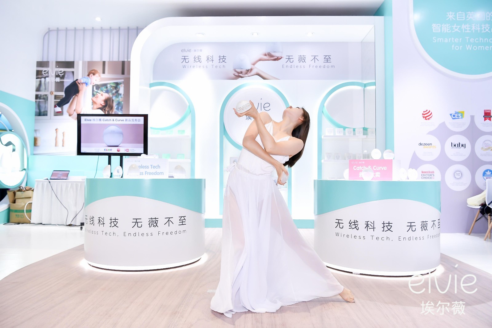 伴随着音乐的律动,一位身穿白裙、舞姿翩翩的女性悄然现身Elvie埃尔薇展台,19个月大宝宝的新手妈妈、身着Elvie Catch埃尔薇防滑乳汁收集杯的现代舞者优雅灵动又力量感十足的表演,吸引了四周所有的目光。