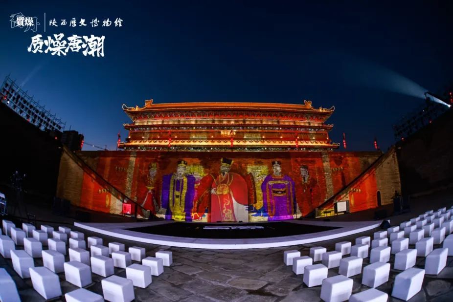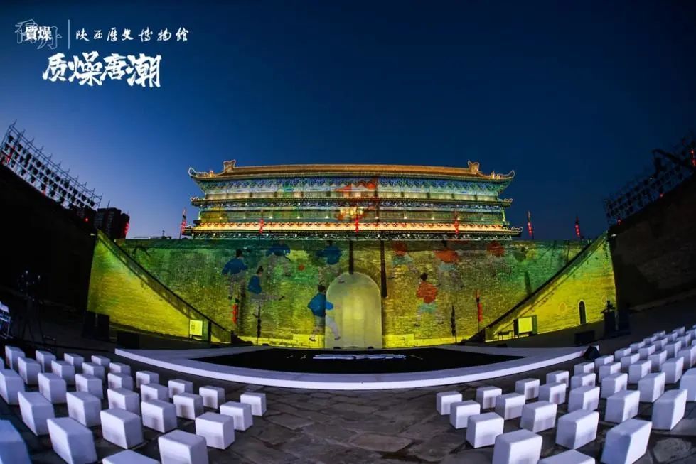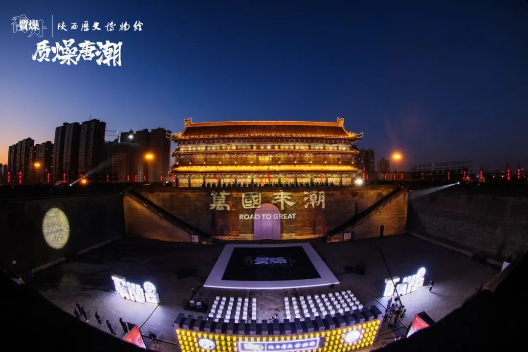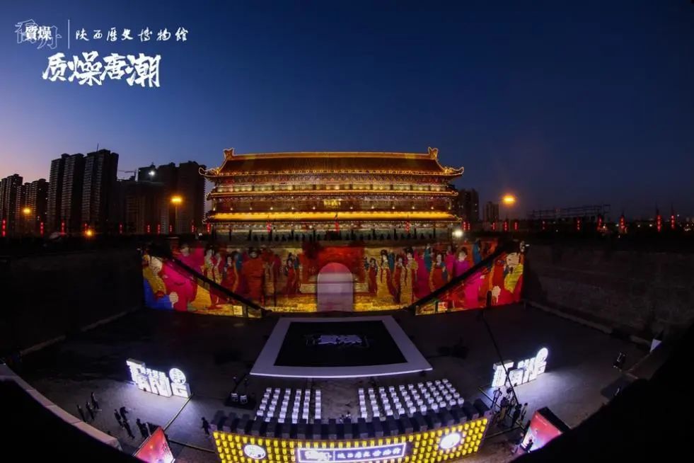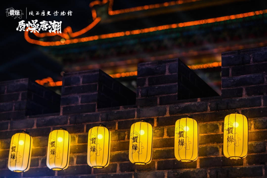 回顾城墙大秀现场,150只唐韵十足的灯笼让宾客穿越回千年前的盛唐。在现场灯光的映射下更是古韵十足。