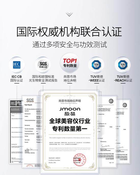 Jmoon极萌作为家用美容仪赛道的领导者,一直以科技创新为核心驱动力,连续2年霸榜销售TOP1,同时,Jmoon极萌也是全球美容仪行业专利数量第一的品牌,累计获得全球专利700余项、国际产品安全认证30多项。2024年11月,品牌携手中国航天旗下太空科技研究中心,共同探讨“航天零重力抗衰科技应用课题研究”,将航天技术应用到家用抗衰技术领域。本次跨界合作,不仅仅是太空科技的跨维度的跃迁,更赋予家用护理以“探索未知”的科技浪漫。