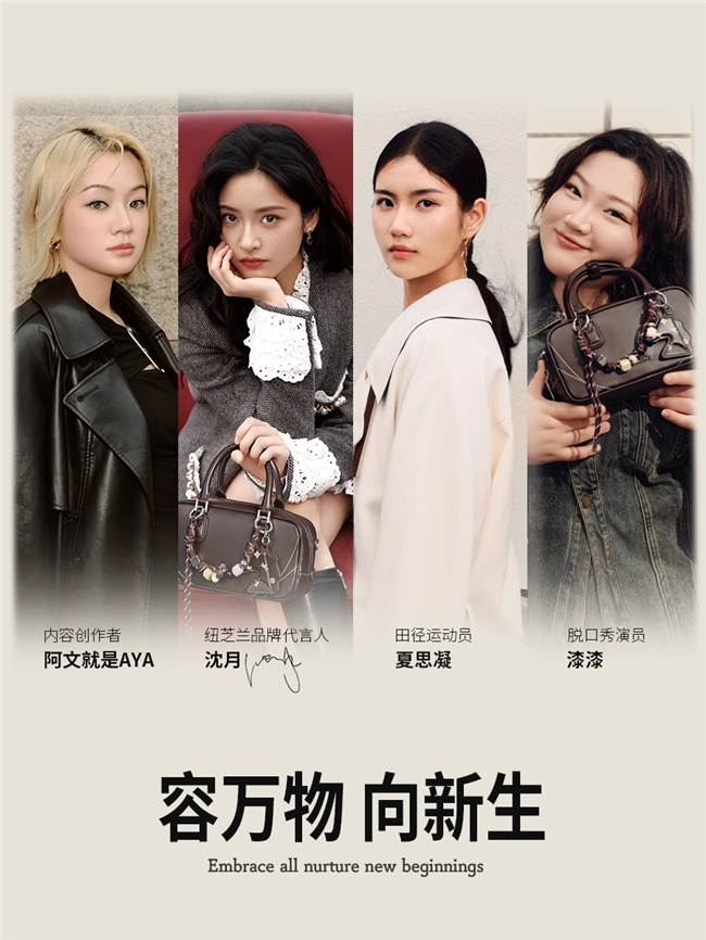 10月20日,中国原创设计包袋品牌纽芝兰(NUCELLE)携手国际时尚杂志《Trendmo趋势》,重磅打造女性专题企划「容万物 向新生」,特别集结品牌代言人&演员沈月、田径运动员夏思凝、脱口秀演员漆漆、内容创作者阿文就是Aya 四位不同领域的优秀女性,通过镜头与叙事,共同呈现当代女性在成长中包容蜕变、向新而生的多元面貌。