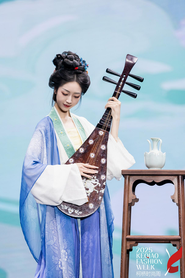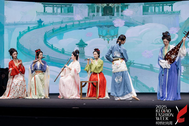 2025年11月9日傍晚,一场以“戏•影”为主题的汉服大秀,于绍兴柯桥的东方米兰时尚发布中心华美启幕,本场大秀将昆剧的婉转雅致与骷髅戏的诡谲奇趣巧编织进现代汉服设计语言。由众歌纺织与瞳莞汉服携手打造的2026新品系列,在虚实交错、传统与创新的碰撞中,探索汉服在当代生活中的表达可能。