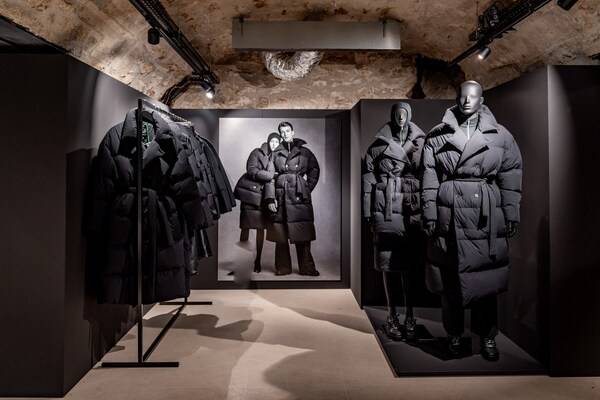 在DSM巴黎旗舰店,ANTAZERO X KRIS VAN ASSCHE共创系列的美学语言得以巧妙融入空间之中,营造低调却极具辨识度的风格张力。观众缓缓穿过以纯黑为主色调的长廊,通过墙面悬挂的系列宣传大片感受系列风格。最后,在一方极简空间中,感受实物的质感与工艺,体悟运动与时尚、功能与美学的并置与重组。