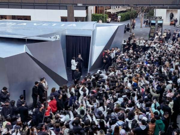FILA VETTA「智酷之境」限时概念空间正式登陆成都太古里东广场,以鞋身 V 形设计语言打造金属银未来感外立面,以鲜明的 V 形建筑符号完整呈现“智酷到底”的风格基因。空间由三大沉浸式章节「风格时序」「智酷新生」「自成境界」构筑叙事脉络,串联老爹鞋演进历史、设计溯源与未来风格表达,并同步融入 AI 互动科技,实现产品科技与潮流趋势的双向延展。演员杨旭文、偶像团体威神 V 等嘉宾亮相活动,现场共同见证 FILA 以现实空间带来的全新智性潮流体验。