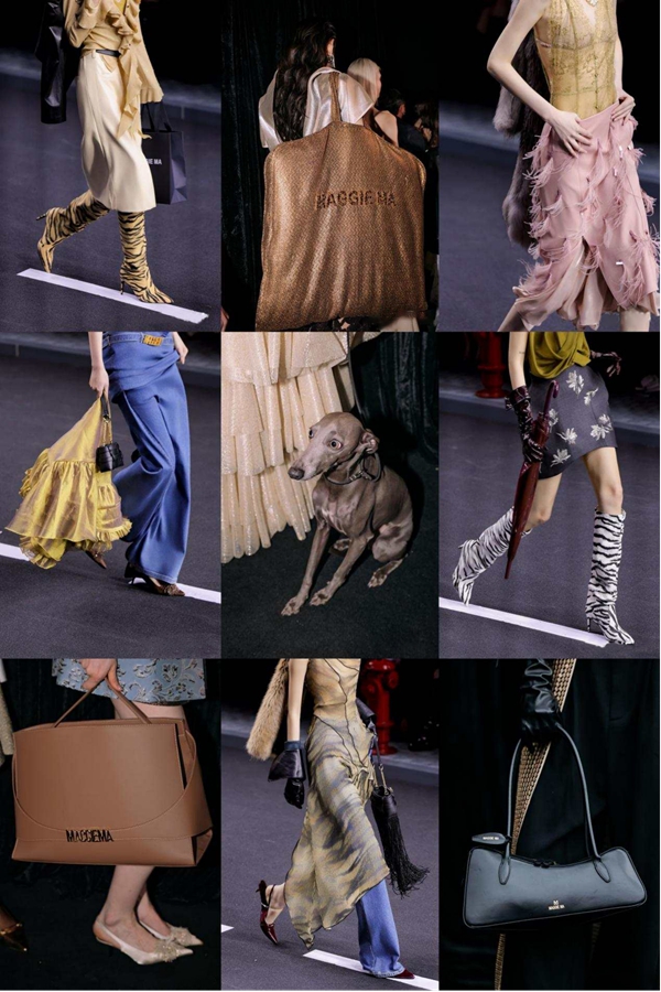 MAGGIE MA本季特别推出多款品牌专属手袋,设计灵感均由服装细节延伸而来,搭配同系列品牌LOGO腰带,以极具辨识度的专属配饰,为整场大秀注入摩登趣味与精致亮点。