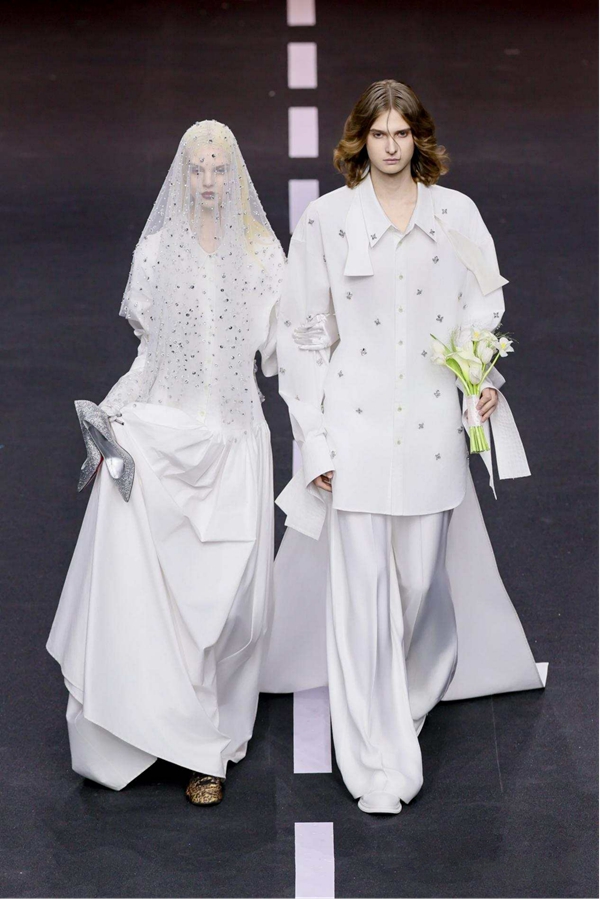 MAGGIE MA这一季使用具有品牌DNA的绣珠工艺表现手法,基础上改为亮眼的银色,更突出高洁、纯洁:象征品格高尚、内心纯净,不与世俗妥协,独自美丽。